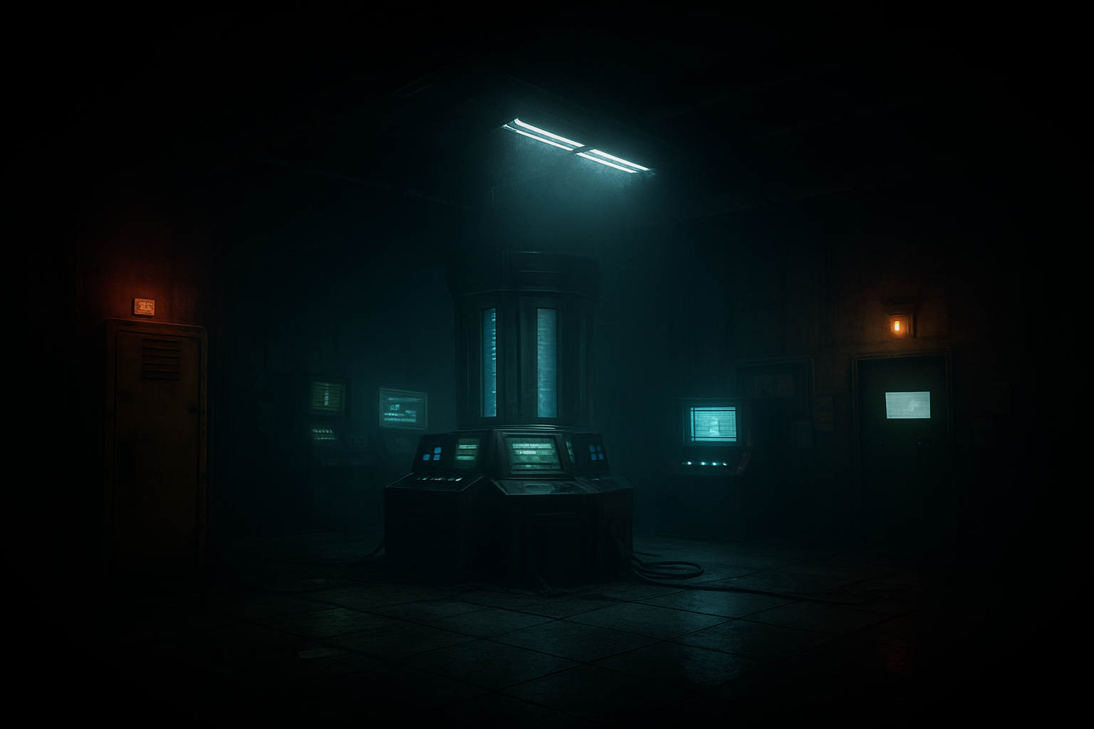 - Lighting & Mood Pass: Define the visual identity using flickering fluorescents, emissive screens, and atmospheric fog.